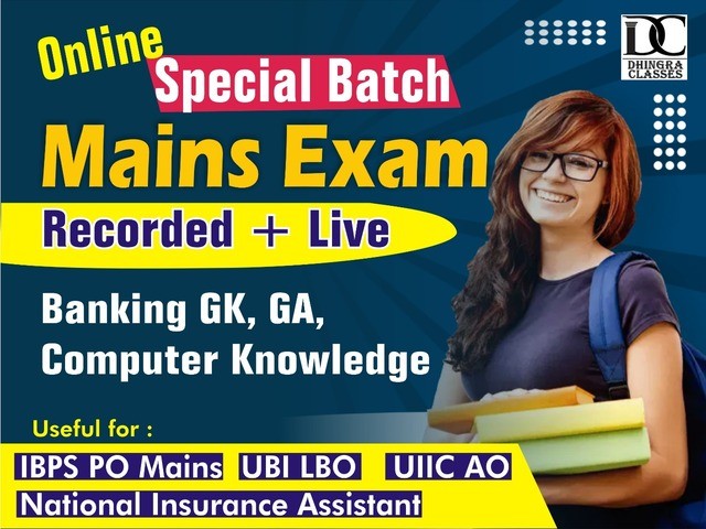 Crack the IBPS PO Mains Exam and UBI LBO Exam with Dhingra Classes! Our comprehensive live course offers everything you need to succeed: Daily Live Classes: Get expert guidance and interactive learning from experienced teachers. Comprehensive Coverage: Master General Awareness, Banking Awareness, Financial Awareness, Reasoning, and Math concepts. Practice Makes Perfect: Benefit from regular tests aligned with class content to reinforce your learning. Special Content on Hindi Subject : Special study material is provided on Hindi Subject Computer Skills Mastery: Gain essential computer knowledge through dedicated sessions. Proven Success: Learn from an institution with a history of producing successful IBPS RRB candidates. 18 Years of Excellence: Our teachers bring over 18 years of experience to the classroom. Ready to take the next step? Enroll Now!! Contact Us: Phone: 9828710134, 9982234596 WhatsApp: 80949-88188 (Message "Add me Mains") Don't miss this opportunity to achieve your IBPS RRB goals!